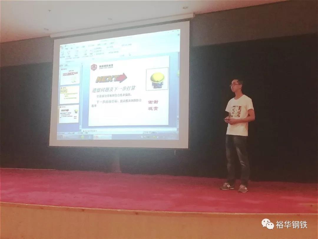 開(kāi)幕式上,河北省冶金協(xié)會(huì)副秘書(shū)長(zhǎng)王大勇發(fā)表了致辭,協(xié)會(huì)主任陳俊芬宣讀了評(píng)比細(xì)則及相關(guān)事項(xiàng)。我集團(tuán)裕華鋼鐵和文豐鋼鐵分別選派了技術(shù)中心的秦彥強(qiáng)、孟凡超和主區(qū)軋鋼廠趙博三人參加。經(jīng)過(guò)精心準(zhǔn)備,發(fā)布的三個(gè)成果分別是:《降低中板冷彎不合格量》、《提高SPHC鋼種命中率》和《提高模具鋼板形合格率》,并全部獲得了二等獎(jiǎng)。